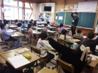 2年生が図画工作で「ふしぎなたまご」という題材の学習をしていました。子どもたちは、担任の先生から、製作のポイントを聞いています。教室の後ろでは、教育実習生が一生懸命にメモを取る姿が印象的でした。