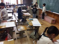 1年生は畑でさつまいもの苗を育てます。