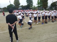 4年生 体育「台風の目」ペア学年の2年生と共に、運動会の練習を行いました。元気い...