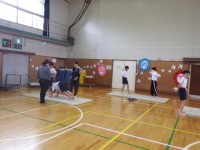 6年生 体育「マット運動」体育館で活動行いました。自らの技を高めるために、一生懸...