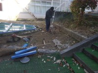 落ち葉が入り池に入り、水質が悪くなるのを防ぐために、城東小六角池にカバーをしてい...