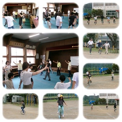 今日の昼放課は、地域サロンで桃太郎音頭の練習をしました。地域の方と一緒に踊り、とても温かい気持ちになりました。地域の皆様ありがとうございました。その後、運動場へ移動して、一輪車の練習をしました。短い時間でしたが、力を合わせて練習しました。仲間を応援する声がとてもよかったですよ。