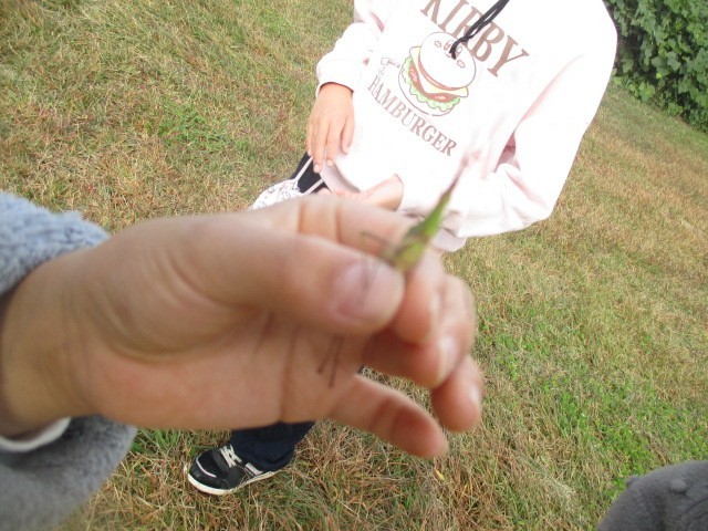 3.4年生は桃太郎公園へ行き、理科の学習で、秋の生き物の観察をしました。ショウリョウバッタとトノサマバッタを見つけ、観察しました。夏と比べて、生き物は少なくなったことに気がつきました。