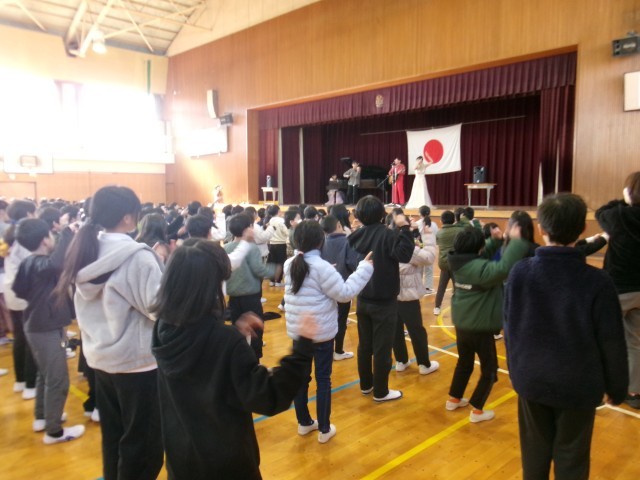 犬山北小学校へ行き、音楽企画LARGO(ラルゴ)さんによる芸術鑑賞会に参加しました。ピアノやバイオリンの演奏やオペラの歌を解説とともに聴き、音楽の素晴らしさを実感できました。最後は犬山北小学校といっしょにヒコダンスをおどり、とても盛り上がりました。