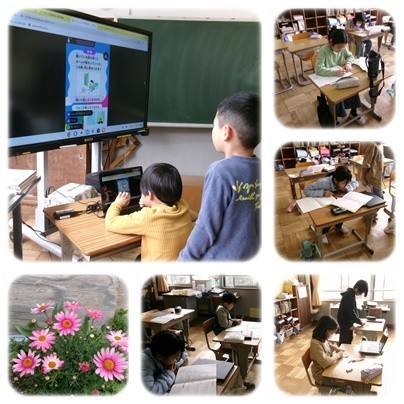1.2年生は安全に関する学習をしています。交通安全や生活面での安全など、クイズをしながら楽しく学んでいます。3.4年生は算数です。今年の1年のまとめの学習をしています。6年生は卒業して1~4年生だけになりましたが、どのくりすっ子も頑張っています。