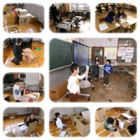 リットルマス等を実際に見ながら、LやdLを使った表し方を学習しています。かさを計る様子にみんな興味津々。