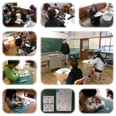 12年生は生活科で動くおもちゃ作りをしています。34年生は社会科で犬山市の歴史文化を調べています。56年生は理科で地層の学習をしています。