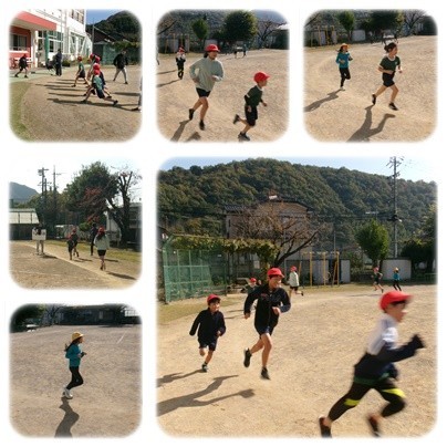 長放課に業間マラソンをしています。自分の目標に応じて、取り組んでいます。友達の頑張る姿に刺激を受けながら、自分のペースで走っています。