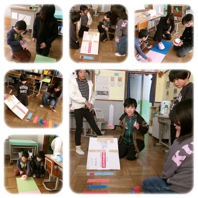 1年生は図工です。「窓をひらいて」の作品が完成したので、友だちの作品を鑑賞しあっています。どんな思いでつくったのか、どんな感じがするか伝え合っています。3.4年生は理科です。「物の温度と体積」の学習を終えた後、最近起きた地震についてみんなで語り合っています。