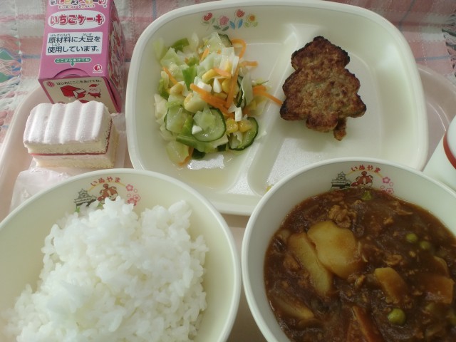 献立: もみの木ハンバーグ ポークシチュー チーズ入りサラダ クリスマスケーキ