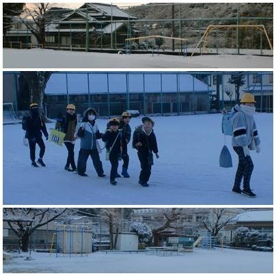 今朝は降雪の登校になりました。大人とは違って、子どもたちは雪に大喜びの登校です。