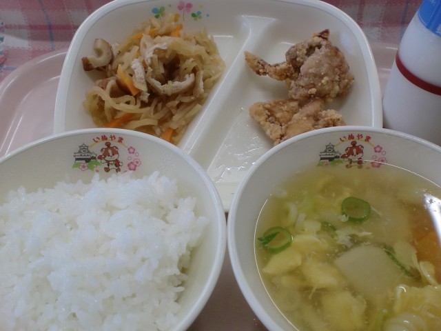 鶏の唐揚げ 切り干し大根の煮物 かき玉汁