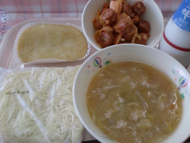 みそラーメン 肉団子のチリ野菜ソース 手作りチーズ蒸しパン