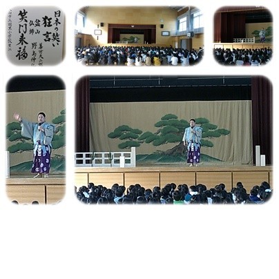 体育館が素敵な舞台になり、日本の伝統文化である「狂言」について学ぶことができました。