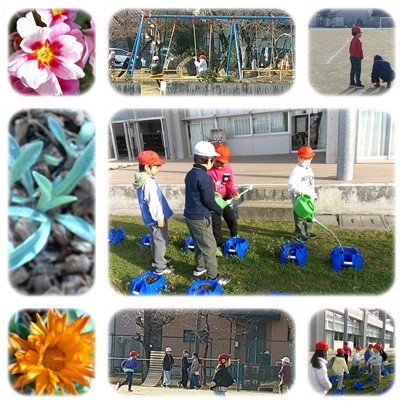 1年生がチューリップにお水をあげています。