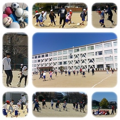 サッカーボールを使って、体を動かしています。