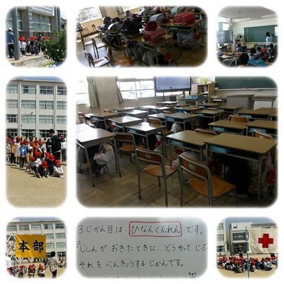 教室では、避難の仕方を確認したり、訓練の振り返りをしたりして