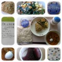 今日の献立は、主食が「スライスパン」、主菜が「ポークシチュー」、副菜が「かみかみサラダ」、そして「大豆チョコクリーム」と「牛乳」です。