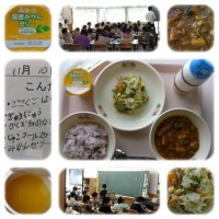 今日の献立は、主食が「むぎごはん」、主菜が「れんこんハンバーグわふうおろし」、副菜が「はくさいの柚子香和え」、汁物が「南瓜入りごまみそ汁」、そして「牛乳」です。
