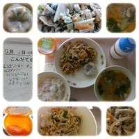 " 今日の献立は、主食が「五目ごはん」、主菜が「鮎の甘露煮」副菜が「やさいの塩昆布あえ」汁物が「アカモクつみれ汁󠄀」そして「牛乳」です。
