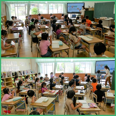 1年 算数 ふえるといくつを しきであらわそう の授業の様子です。自動車が駐車場に5台あります。2台増えると何台になりますか。