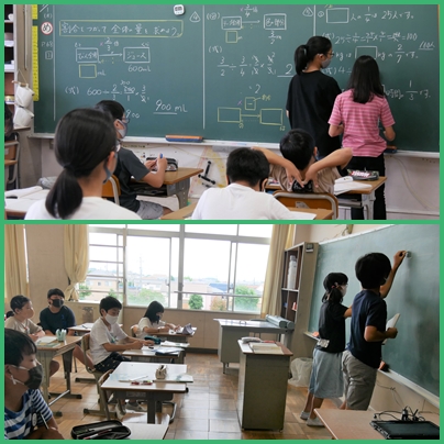6年生 算数 割合をつかって全体の量を求めよう の授業の様子です。