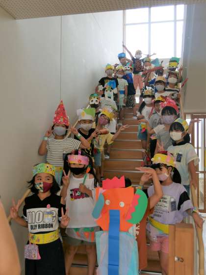 2年生 図工 わっかでへんしん の授業の様子です。すてきな作品が完成しました。