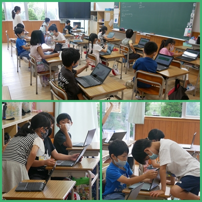 2年生 chromebookを使って、eライブラリーの使い方を復習しています。