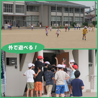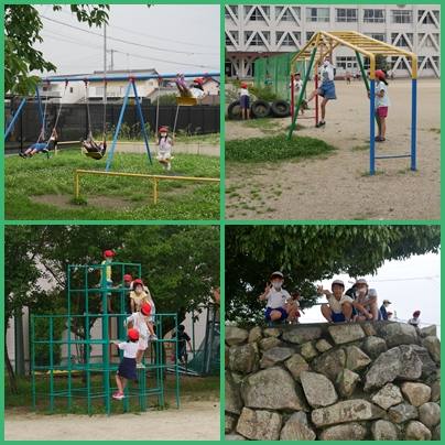 今日は、雨の合間に、久しぶりに外で遊べました。「まってました」たくさんの子が外で元気に遊んでいました。