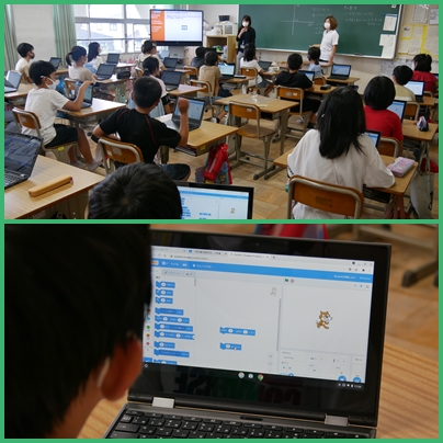 5年生 chromebookを使って今日はプログラミングの練習です。