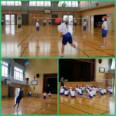 6年生 体育 ソフトバレーボール の授業の様子です。