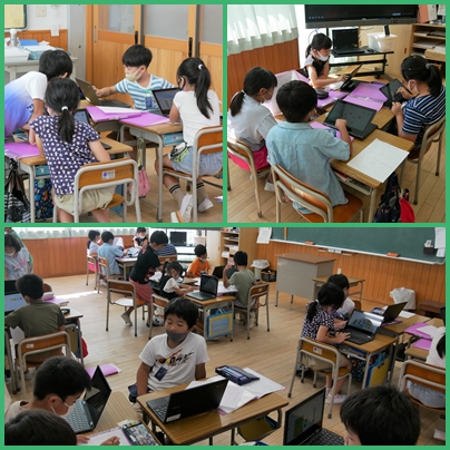 2年生 生活科 町たんけんをかんせいさせよう の授業の様子です。班ごとにジャムボードを活用してクイズをつくっています。