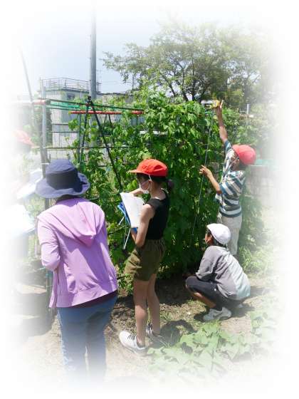 4年生 理科の授業の様子です。ゴーヤのつるの長さも記録しています。