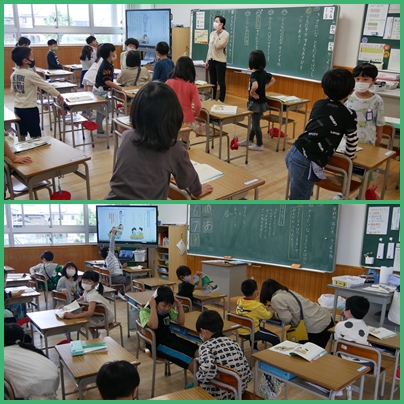 1年生 国語「ききたいな ともだちのはなしーともだちと すきなあそびを つたえあおうー」の授業の様子です。