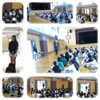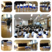 6年生 音楽の授業の様子です。窓全開で、白い御嶽山に向かって歌っています。