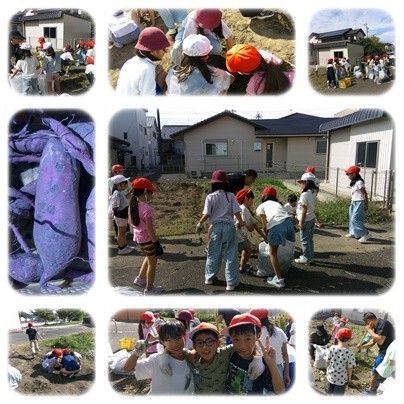 昼放課に2年生がサツマイモ掘りの片付けをしていました。