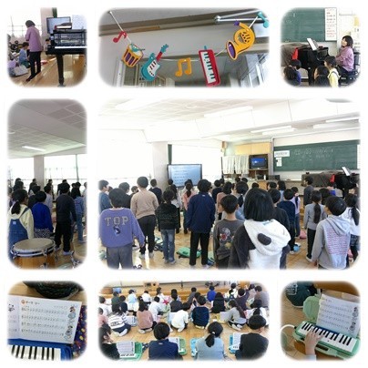 音楽の授業では、1月の全校の歌「ありがとうの花」を歌っています。