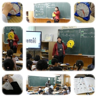 算数の授業では、時計の読み方や文章から時間を考えるを解いています。