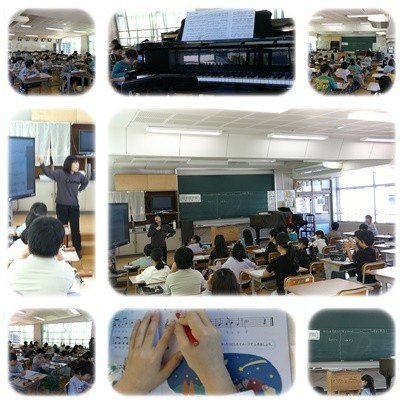 音楽の授業では、楽譜を見てその特徴を考えていました。