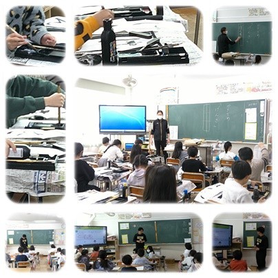 理科の授業では、工作に取り組んでいます。はさみやのりを使ってどんな装置ができるか楽しみです。