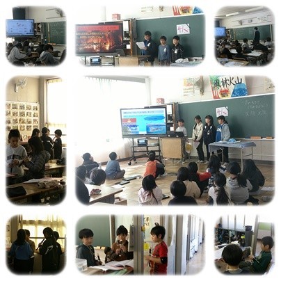 教室の前に出て話すのは少し緊張しますが、グループで役割分担してがんばっています。