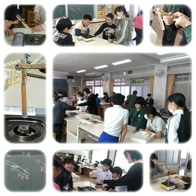 グループで実験をして考察をしています。あたたまる様子を真剣に観察しています。