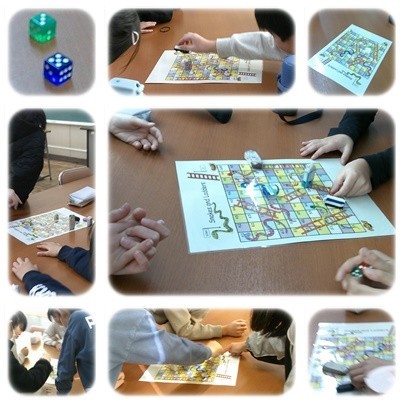 外国語活動の授業では、双六をしながら英語で話すアクティビティをしています。