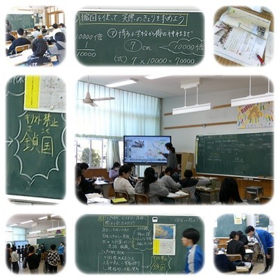 社会の授業では、鎖国をしていた江戸時代にどのように外国と関わったのかを考えています。