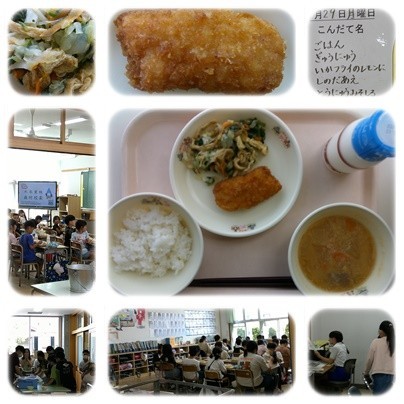 大人気メニュー「いかフライのレモン煮」のおかわりには行列ができている学級もありました。