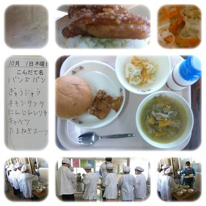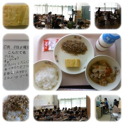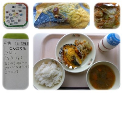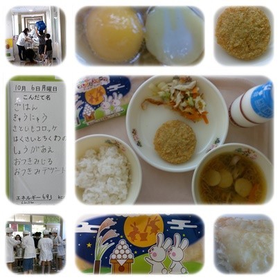 給食でもまんまるの「里芋コロッケ」、「かぼちゃ餅ボール」、「うさぎ模様の蒲鉾」が提供されました。