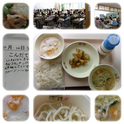 給食でもまんまるの「里芋コロッケ」、「かぼちゃ餅ボール」、「うさぎ模様の蒲鉾」が提供されました。