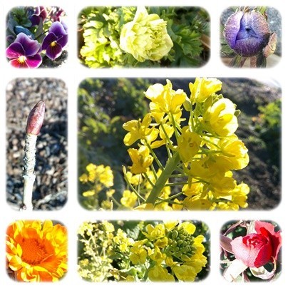 ナズナの花やチューリップのつぼみが春が近いことを教えてくれています。