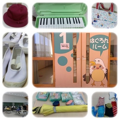 算数セットに入っている教具や帽子、体操服、鍵盤ハーモニカなどが販売されています。
