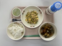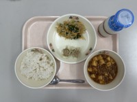 【今日の献立】・麦ごはん ・牛乳 ・麻婆豆腐 ・しんうまい ・もやしの中...